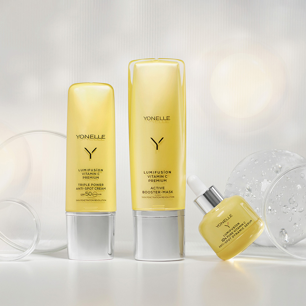 Biologicznie czynne formy witaminy C połączone z fermentowanymi ziarnami jęczmienia uzyskanymi przy produkcji ginu oraz ekstraktem z YUZU („grejpfrut japoński”) tworzą COLLAGEN BOOSTER, o dużej sile rozjaśniania przebarwień, odnowy skóry i działania anti-aging.